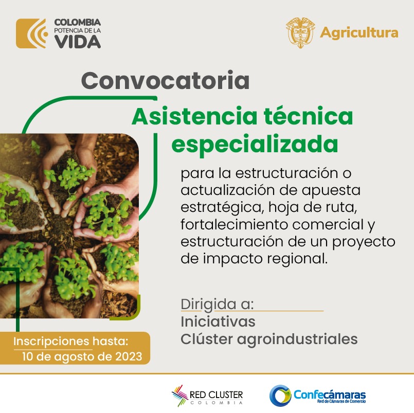 Desde la Red Clúster Colombia de Confecámaras, tenemos como objetivo promover el fortalecimiento y consolidación de las iniciativas clúster del país. En procura de dicho objetivo, se celebró un convenio de cooperación con el Ministerio de Agricultura y Desarrollo Rural para el fortalecimiento de la competitividad de las cadenas productivas agroindustriales, a través de la implementación y consolidación de la estrategia de clúster como eje para el desarrollo sostenible e insumo para la formulación de política pública.